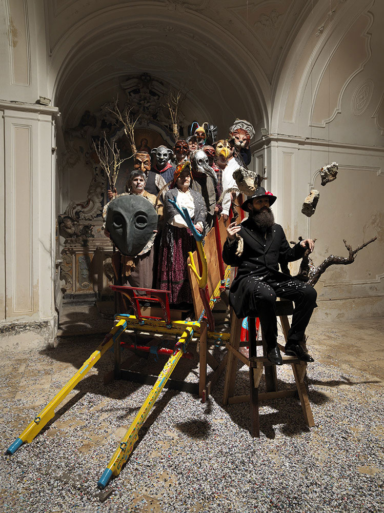 In quegli anni fu decisivo un passaggio: uno dei miei professori di pittura (Paolo Lunanova) portò me e un mio amico e coinquilino ad allestire lo stand di Arte Fiera a Bologna della sua Galleria, la Bonomo di Bari. Qui fummo catapultati nel mondo dell’arte reale, non più figure sui libri, maneggiavamo Alighiero Boetti, Mario Schifano, Tony Cragg e fui folgorato da una valanga di tele (vele) enormi di Julian Schnabel alla Galleria d’Arte Moderna. Lì forse presi davvero in considerazione l’idea di quello che volevo fare da grande. Di fatto in quest’ottica di diventare un artista trascurai gli studi per intraprendere viaggi della speranza con grandi tele arrotolate sulle spalle. L’unico modo per uscire fuori dalla situazione studentesca provinciale era trovare una galleria al nord. Facevo collette tra amici, piccoli spettacoli in cui sputavo fuoco e racimolavo i soldi per il biglietto dell’espresso notte. La notte la passavo in treno, arrivavo la mattina a Milano e cercavo, senza risultato, di srotolare le tele che mi ero portato appresso. La sera ripartivo per un’altra nottata in treno. All’epoca avere quasi vent’anni era imbarazzante per sostenere di essere un artista. I giovani artisti avevano quarant’anni e mi chiedevano, schernendomi, se avessi fatto l’Asilo di Belle Arti. A un certo punto ci fu la svolta, un gallerista partenopeo trapiantato a Milano e detto il Tedesco volle vedere le mie tele e gli piacquero. Costui, Enzo Cannaviello, mi chiese di trasferirmi a Milano e io lo feci lasciando tutto e tutti. Facevo le mostre con i miei quadri, li vendevo e avevo vent’anni! Ho abitato a Milano tredici anni, ho condiviso lo studio con Francesco De Grandi, amico fraterno e maestro, padrino di mio figlio. Il resto della storia è abbastanza nota, è comparso internet, vivo a Firenze, fumo la pipa, mi piace vestirmi bene, non parlo inglese, ho la barba da anni e moltissimi capelli.