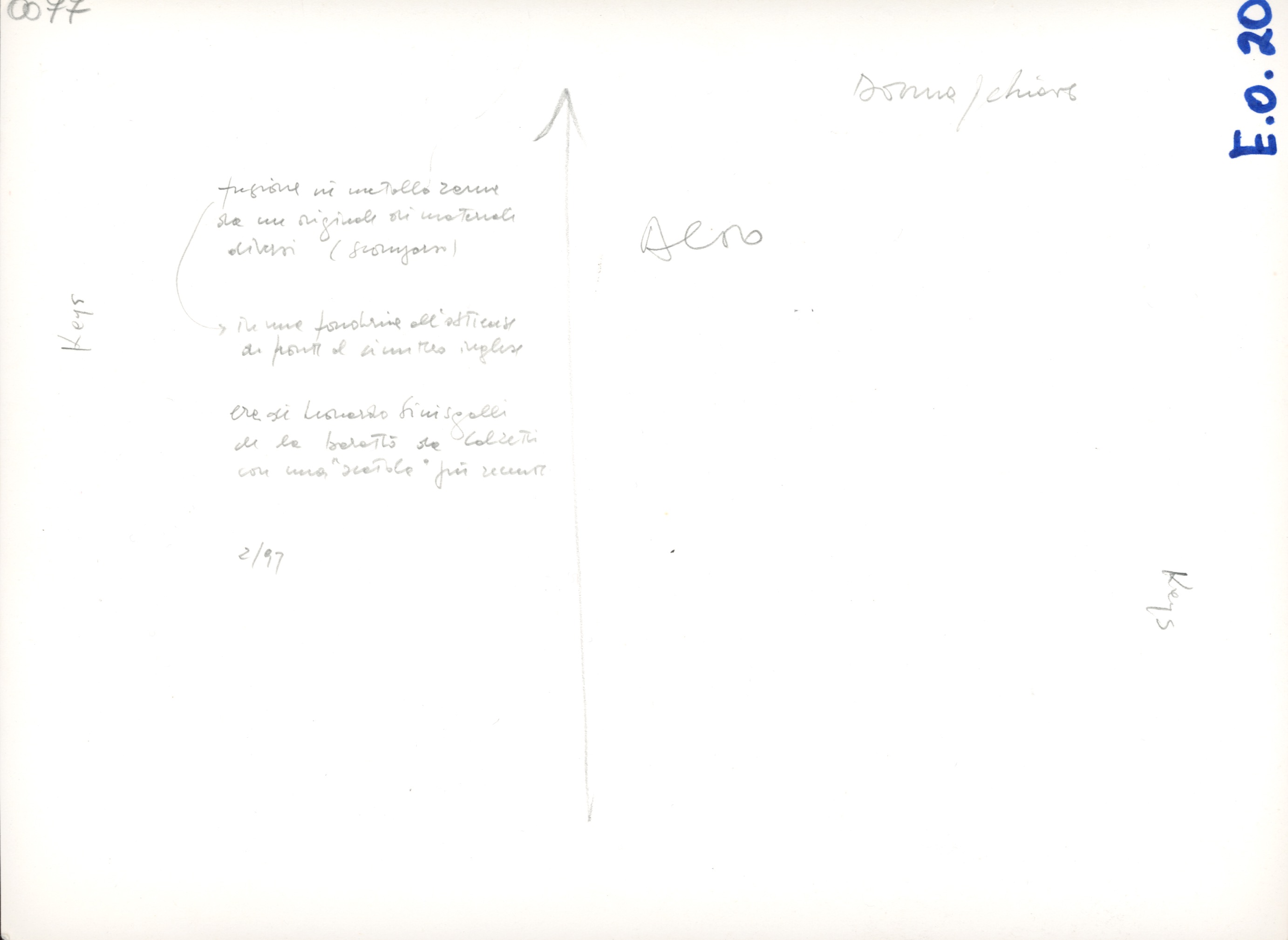 [15] Al retro dell’opera Donna/Chiave è presente una dedica autografa di Gianfranco Baruchello che conferma la proprietà di Sinisgalli: «A Leonardo Sinisgalli Gianfranco Baruchello 1 ott. 1961».